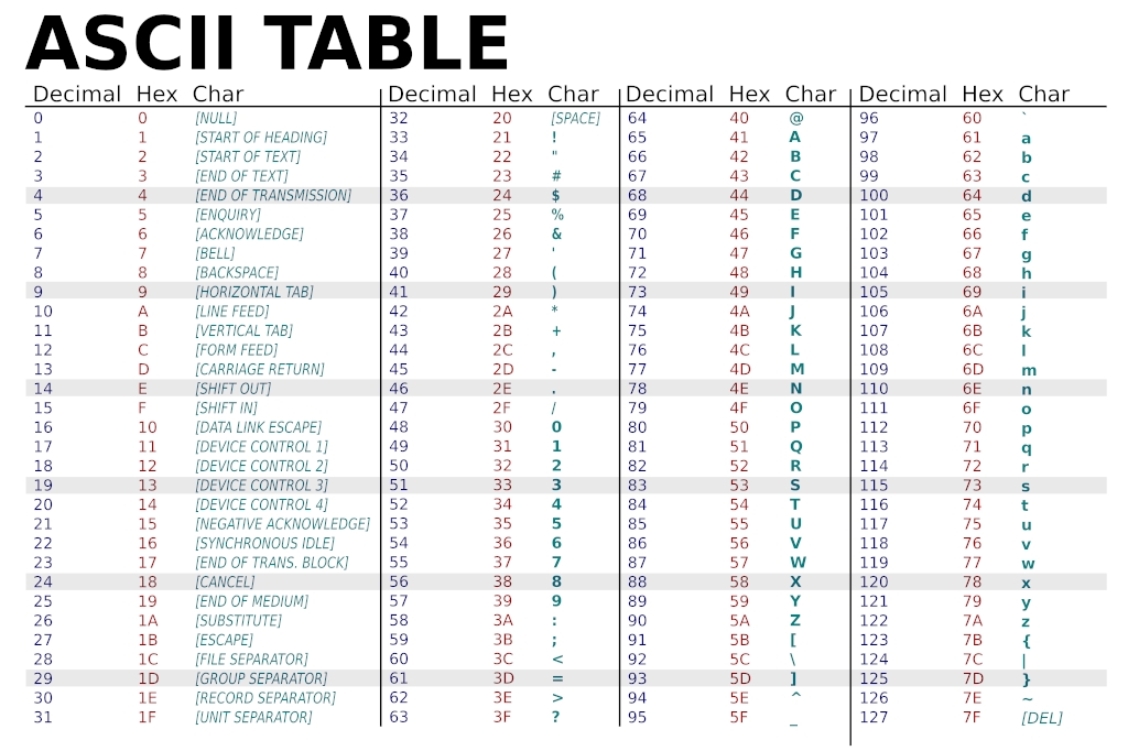) represents text as a sequence of characters. If you know the ASCII value for a particular character, you can identify how the text is structured as a number. (This is most easily done using the hexadecimal @ux