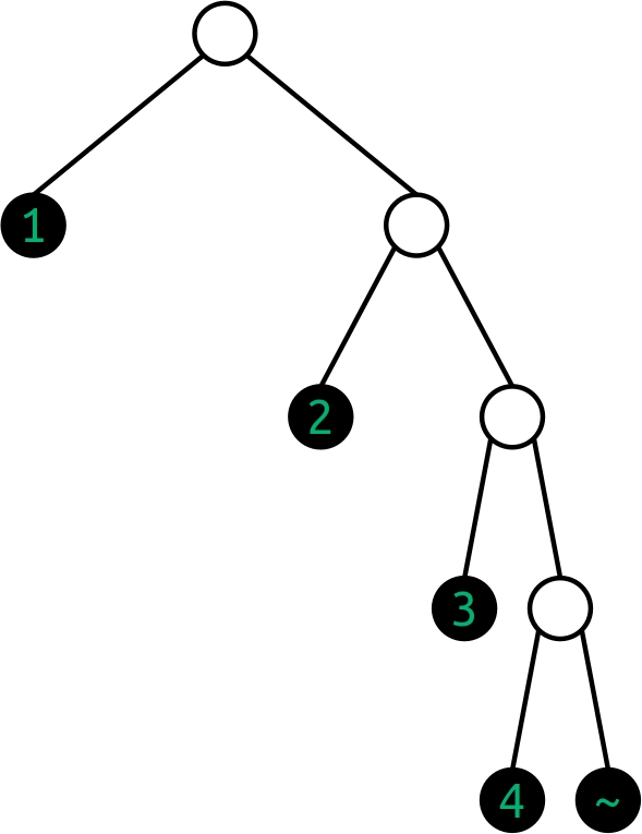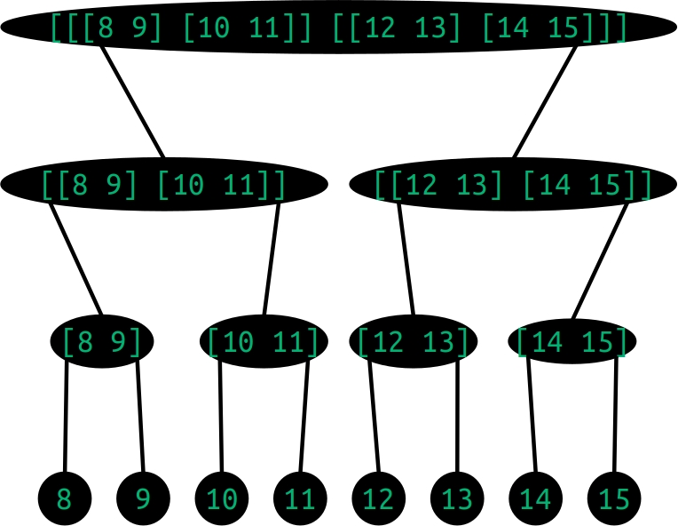 s) are collections of values which occupy the tails of cells, leading to a rightwards-branching tree representation. (Although this may seem extravagant, it has effectively no bearing on efficiency in and of itself; that's a function of the algorithms working with the data.)