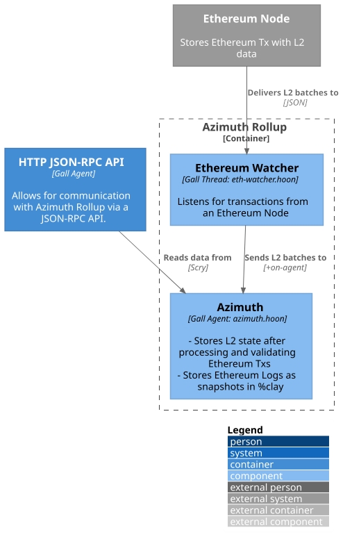 This document summarizes the various components involved with Azimuth and how they communicate with each other. This also constitutes an explanation for how Urbit implements the data flow of naive rollups.